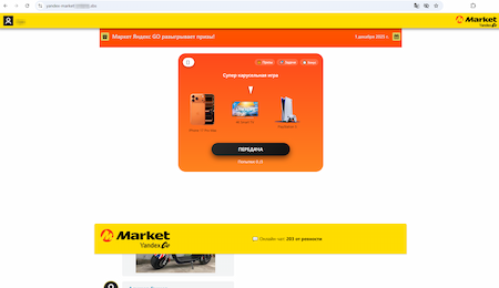 Selama triwulan keempat tahun 2025, analis Internet Doctor Web mencatat munculnya situs web marketplace palsu baru. Penipu yang mengaku sebagai marketplace menawarkan kepada calon korbannya kesempatan untuk memainkan permainan "carousel" (mirip dengan roulette) dengan peluang memenangkan hadiah. Setelah beberapa kali mencoba, pengguna dianggap "beruntung", tetapi untuk menerima hadiah mereka, korban seharusnya terlebih dahulu membayar biaya pengiriman, kemudian asuransi, pajak, dan sebagainya. Dalam beberapa kasus, korban diberitahu bahwa barang yang diinginkan kehabisan stok dan ditawari untuk menukarnya dengan uang tunai. Namun, untuk menerima uang tunai, mereka harus membayar "biaya" tertentu. Jika pengguna setuju, mereka kembali diharuskan membayar biaya tambahan, seperti asuransi, aktivasi akun, dan sebagainya.
