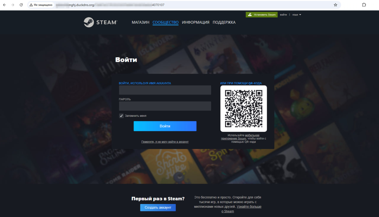 Situs web layanan Steam palsu menampilkan formulir phishing untuk memasukkan login