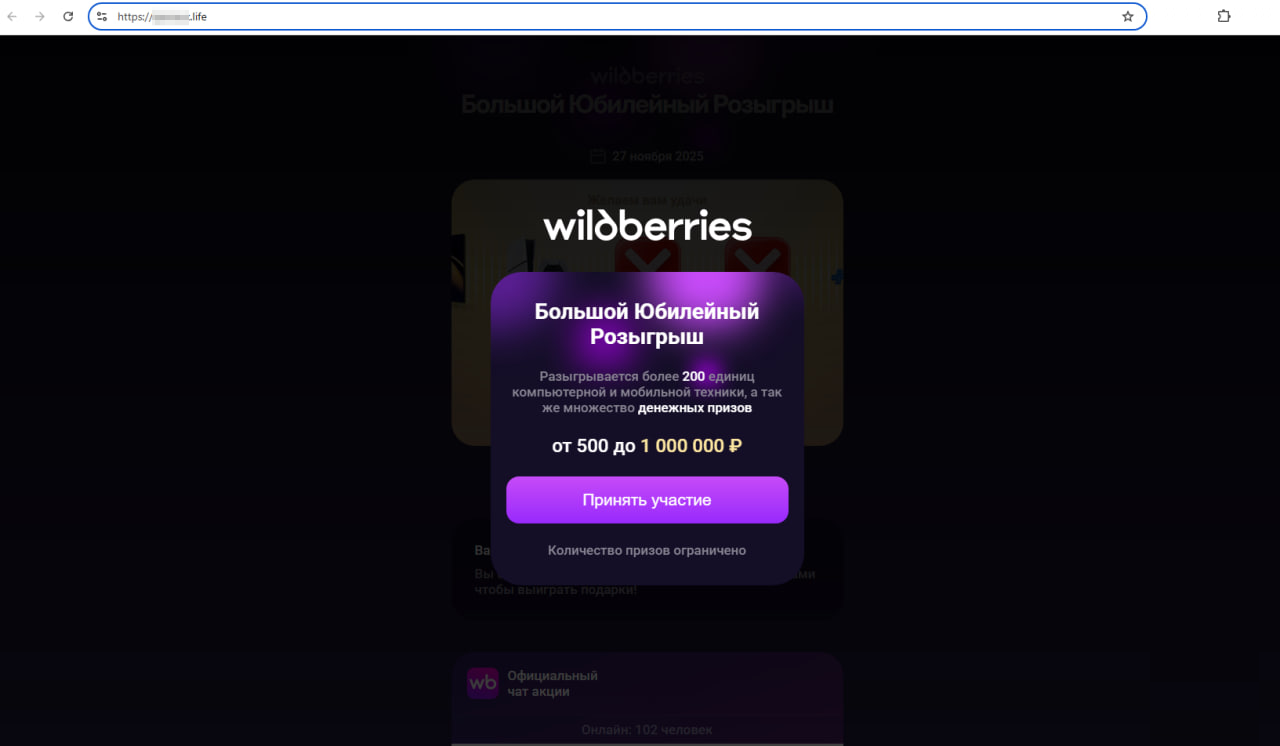 Para pengguna kembali menemukan berbagai jenis situs web palsu yang menawarkan bermacam hadiah dan bonus, serta partisipasi dalam sebuah "promosi menguntungkan". Situs web marketplace Rusia palsu telah tersebar luas, di situ pengunjung seolah-olah dapat berpartisipasi dalam undian berhadiah. “Hadiah" telah diprogram sebelumnya, dan untuk "menerimanya", korban diharuskan membayar sejumlah uang, seperti pajak, diikuti dengan biaya pengiriman dan asuransi. Dalam variasi penipuan lainnya, produk yang diinginkan katanya tidak tersedia, tetapi ditawarkan uang tunai sebagai gantinya. Untuk "menerima" uang tersebut, pengguna juga diharuskan melakukan sejumlah pembayaran, seperti bea masuk, asuransi, dan sebagainya. Pada akhirnya, korban tidak menerima hadiah apa pun.